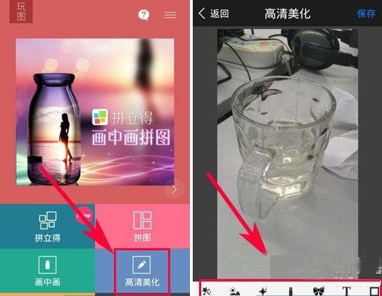 玩图可以制作gif图、图中图,以及最基本的美画图,那么玩图怎么用?小编带来了玩图使用教程,下面就来看看如何使用吧。在这里主要讲解玩图的【高清美化】功能,打开“玩图”后点击“高清美化”,选择一张你要拼的图片,然后查看美图工具选择你想要的美画的工具。