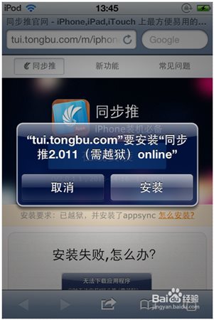 1、打开苹果自带的safari浏览器,输入tui.tongbu.com,打开在线安装页面。