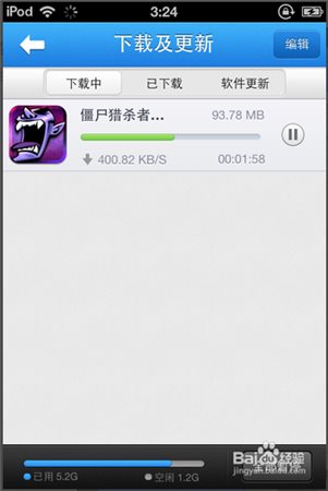 5、点击下载后,可以通过顶部的下载与更新快捷入口查看下载中的软件。软件下载后会自动安装到手机上。