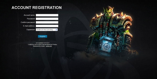 5.在浏览器上输入127.0.0.1,就会弹出一个注册页面,在这里注册账号和密码,然后用这个账号密码从登陆器进入游戏