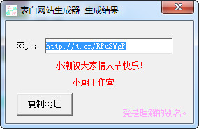 表白网站生成器是一款网页生成工具,可以按照名字生成表白网页,以POST方式提交,并且附带短网址转换功能