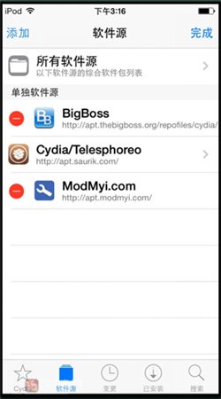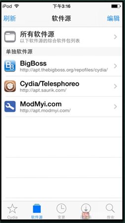 2、耐心等待越狱应用商店刷新完成后,点击 软件源