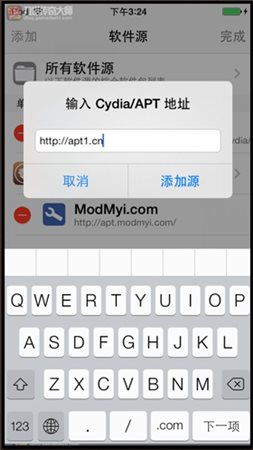 4、在弹出的输入框内输出 apt1.cn ,然后点击添加源