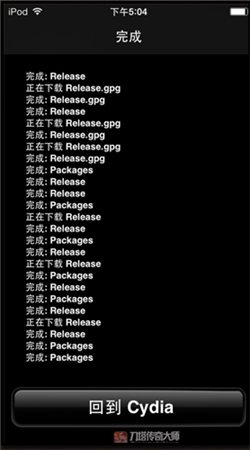5、耐心等待源添加完成后点击返回 Cydia