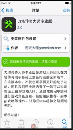 刀塔传奇大师专业版是《刀塔传奇大师》的升级版,辅助功能更加强大。目前刀塔传奇大师专业版只适合越狱苹果手机使用,所以使用时你的设备必须已经越狱。