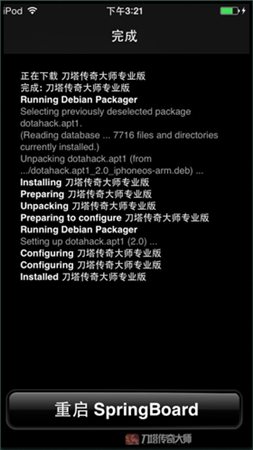 8、耐心等待安装完成后,点击 重启SpringBoard