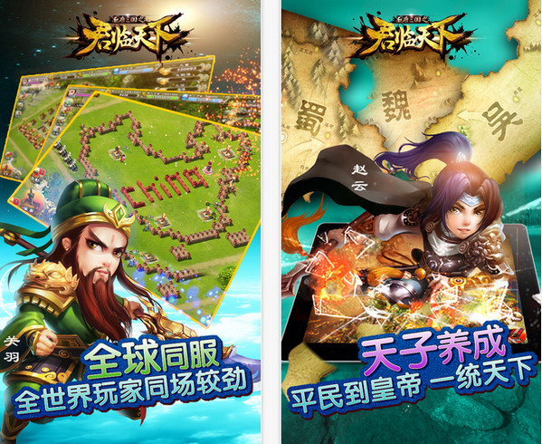 君临天下手游是首款全球同服的三国志策略游戏,君临天下手游真实还原历史,故事背景严格遵照三国原著改编,游戏内拥有多达146位武将、120座城池、36种官阶以及海量兵器法宝名驹等游戏元素,力求为广大玩家展现一个完美的三国游戏。