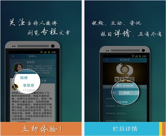 4、主持人:24小时不间断更新央视著名主持人的专栏和微博,使观众不仅了解到真实的主持人工作、生活状态,还可以与主持人在线交流。
