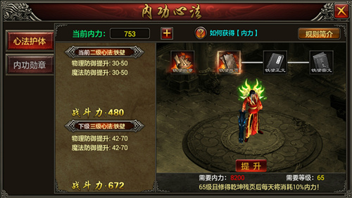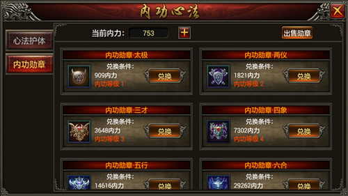 消耗内力可兑换内功勋章,佩戴内功勋章将增加角色属性
