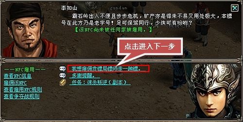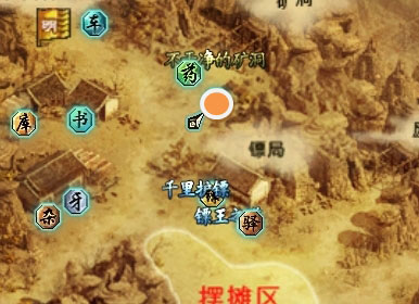 ③ 在查看到你的矿石储存情况后,与镖头NPC(李如山)对话,镖头位置如图(3):