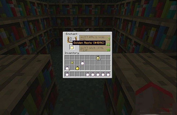 注意,原版金苹果(8个金粒合成的)不能附魔想附魔,必须要用这个新的金苹果(8个金锭合成的)