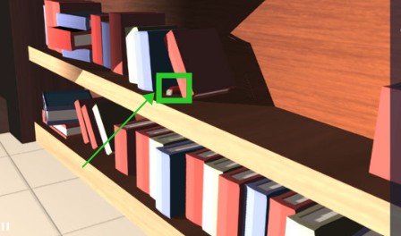 走上客厅的二楼,在右侧书架处翻阅查找,能够找到一块磁铁。