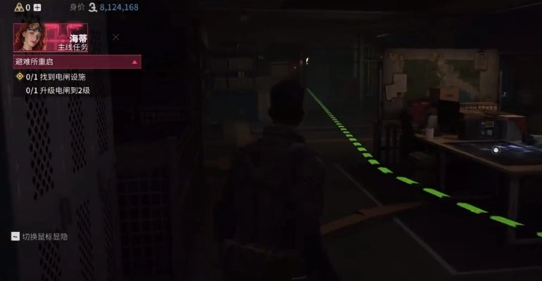 电闸设施任务属于新手任务,要是不完成,后续游戏很难开展。游戏开局时,海蒂就会给我们发布找到电闸设施的任务。接到任务后,我们调整角色视角,便会发现地上有绿色线条作为指示。