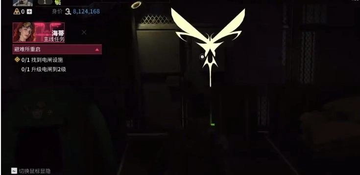 我们顺着绿色线条的任务指引一路前行,进入仓库后,找到一个形似蝴蝶的图标,与之互动开启大门,便能看到电闸设施。