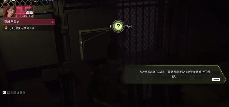 当找到电闸设施,系统便会接着提示后续任务,玩家能够继续完成。要是没找到电闸设施,游戏界面会显得较为昏暗,而完成电闸设施相关任务后,游戏场景就会恢复照明。
