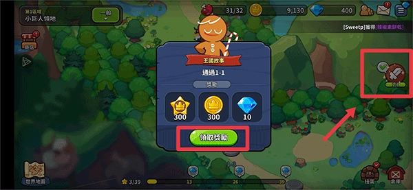9、成功击败敌人后,回到探险界面,点击右侧的战斗图标来领取奖励。