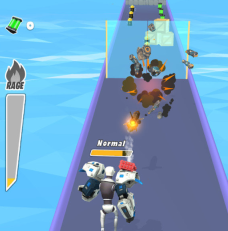 《疯狂机器人战士》是一款超有趣的闯关跑酷游戏。在游戏里,玩家将化身为机器人,前行道路布满陷阱、障碍物以及敌人。玩家操控的机器人只有一个目标:消灭所有敌人。要是前方出现敌人,就用激光将其射爆;要是前方有墙挡路,便用激光把它射穿;要是前方出现巨型高达,那就变身赛亚人模式。整个游戏过程既好玩又刺激,喜欢这类游戏的玩家,别犹豫,赶紧点击开玩!