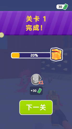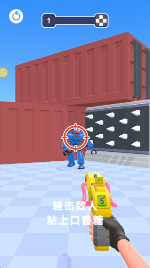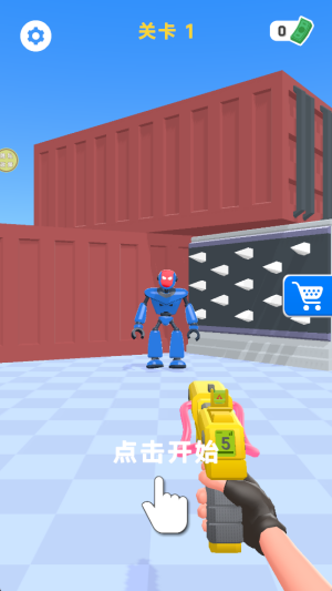 1、该游戏的核心玩法为射击,玩家能够自主操控射击方向,迅速瞄准机器人并开枪射击,成功消灭全部机器人便能通关。