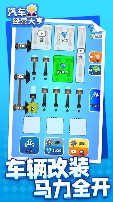 《汽车经营大亨》是一款极为精彩的汽车销售模拟经营游戏。游戏运用清新舒适的卡通画风进行设计,玩家要经营自己的汽车厂和店铺来推动发展。仅通过简单的规划安排,就能持续推进整体建设。每天都会有大量订单任务和客户纷至沓来,玩家需按相应要求制造不同汽车并点击出售,如此既能大幅提升发展效率,节省时间精力,还能逐步解锁独特的改装任务。对工厂和店铺要谨慎管理以推进发展,依据基本发展需求与条件制定不同策略方案,维持日常运营与基本收益,完成各方面建设,充分利用资金财富实现各方面扩张,趣味性满满。