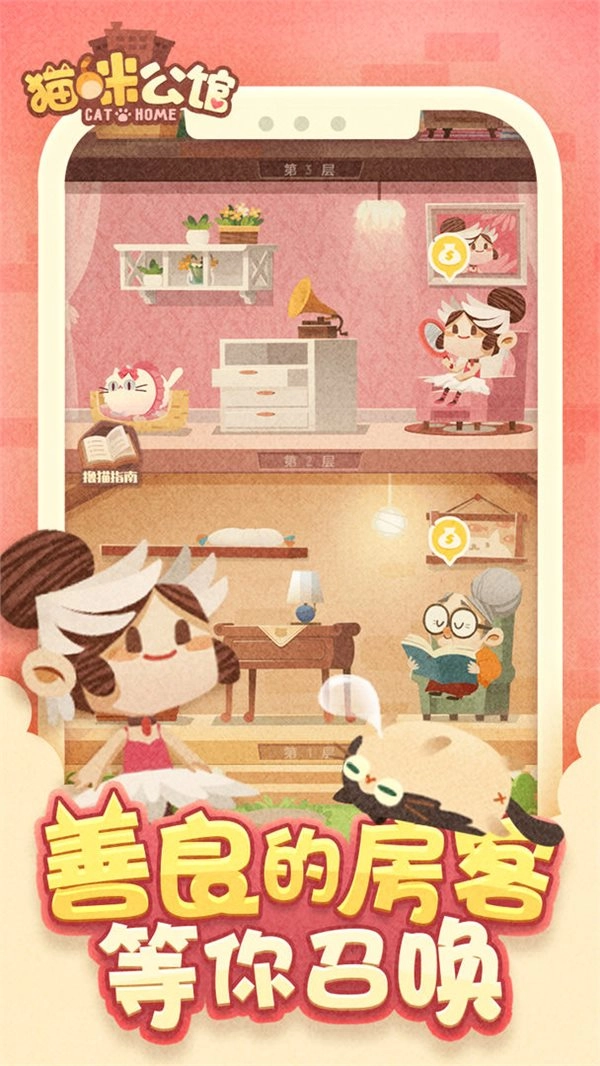 以可爱猫咪为题材的放置收集类游戏。游戏画风Q萌可爱,拥有超150只原创猫咪设计,每只猫都具备独特的性格与特色。在猫咪宅邸中,每层都住着性格各异的主人,每位主人负责照顾一只猫咪,为心爱的猫咪打造不同风格的宅邸,体验趣味十足的养猫生活!
