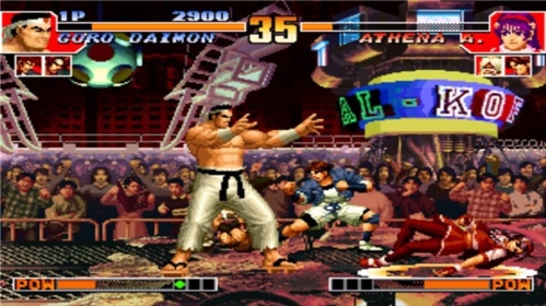 老拳皇的对决模式,玩家与玩家之间的实时格斗对战,每人操控3名角色接力上阵。