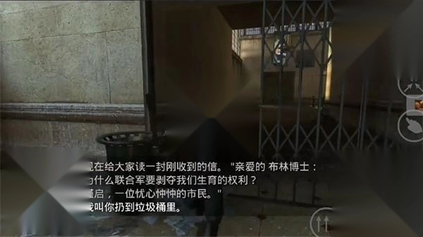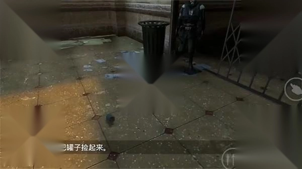 4. 穿过窗户后,继续向前走,穿过右侧的门,上楼梯并左转,直达大厅。此时,一名士兵要求你捡起一个瓶子并丢进垃圾桶。