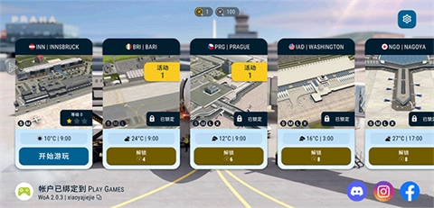 1、挑选已解锁的机场进行游玩。