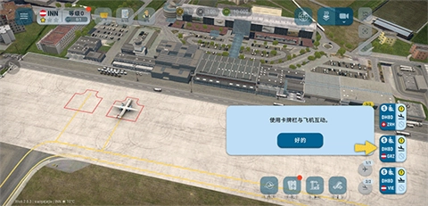 2. 在机场内,点击右侧的卡牌栏,即可与飞机进行互动。