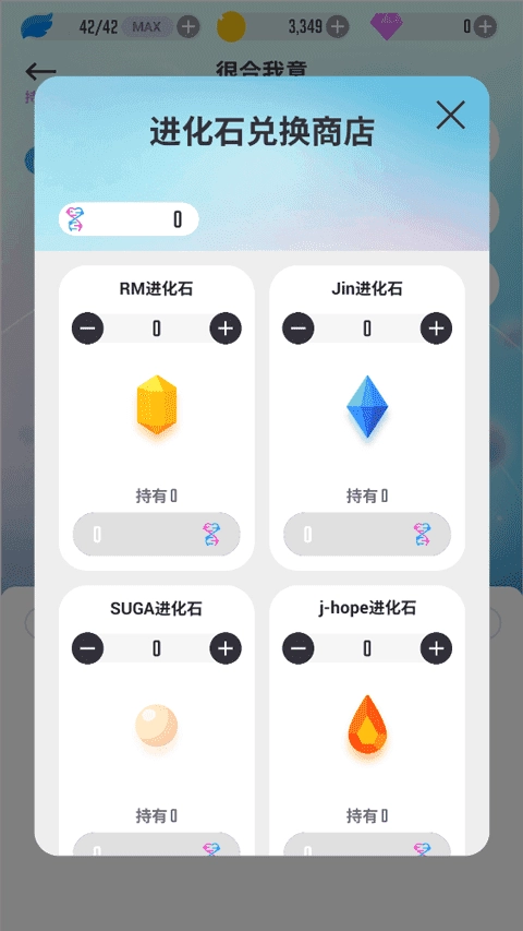 5、兑换规则:只有当同一种卡片数量达到两张及以上时,才可将多余的那张进行兑换。兑换后,能获得与该卡片相对应成员的进化道具,此道具可用于升级卡牌的花朵与DNA。