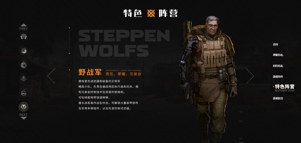3、阵营:各个阵营的发展方向与特色各异。在对战匹配时,针对不同阵营能采用多样战术。工程师是初始阵营,玩家等级提升后,可加入其他阵营。其中,狂人阵营擅长近战;游民阵营拥有飞机部件;拾荒者和野战军则属于远攻型阵营。