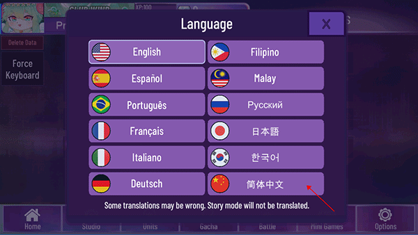 打开加查星云,点击主界面右下角爱心按钮,可以切换语言。