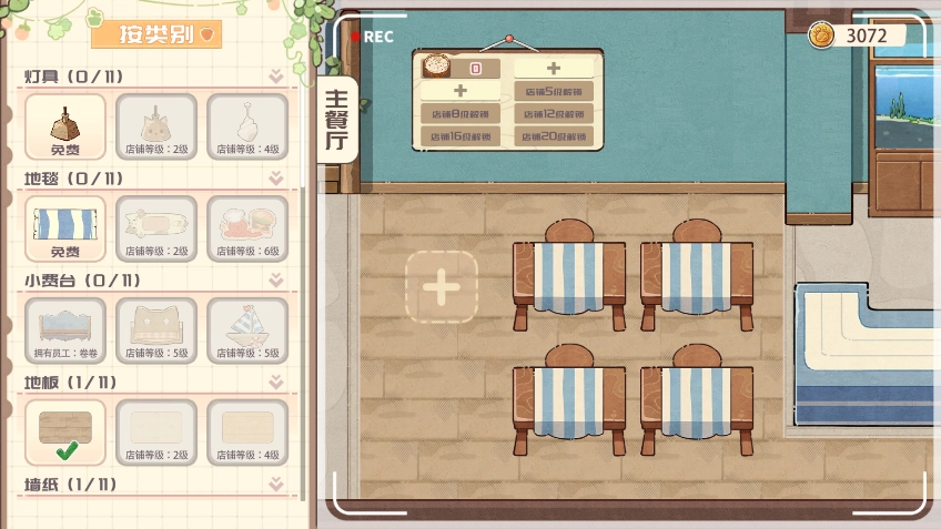 8、点击“收集”,接着在选项中选择“家具店”,便可花费金币购置各类餐厅家具。