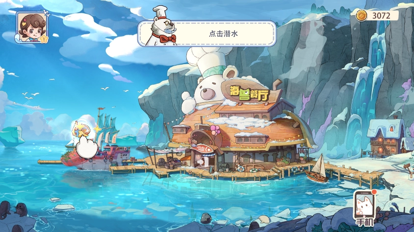 9、要是没有食材,可在主界面点击此按钮下海捕鱼。