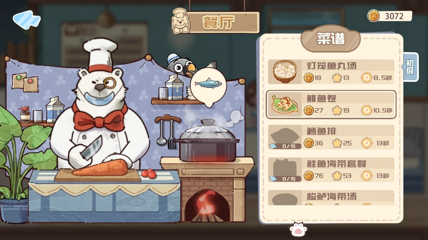 涵盖旋转餐台、壁挂、冰激凌机等设施,完成升级后能够带来额外盈利,特别适宜在离线挂机状态下持续获取鱼干。