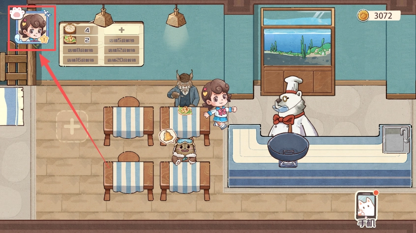 1. 进入游戏之后,点击主界面的餐厅,即可进入餐厅界面。