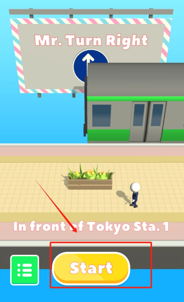1. 请点击画面右下角由红色框标注的黄色“Start”按钮,以此开启游戏。同时需留意左上角所显示的Tokyo Star1场景信息,而左下角的绿色菜单按钮,点击后能够查看设置选项。