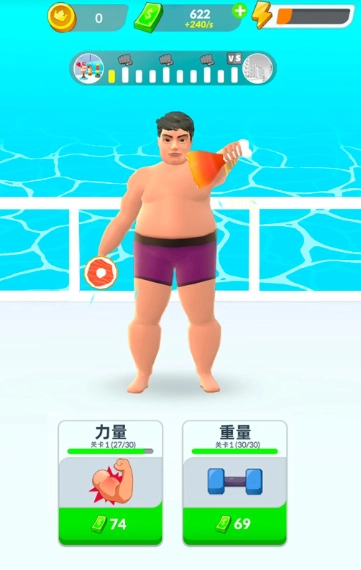 2、玩家进入游戏后,首先要熟悉各类器械及其练习方法,掌握人物动作。 3、只要成功闯关并完成每日运动量,角色就能逐渐减掉肥肉,这是一个漫长的过程。