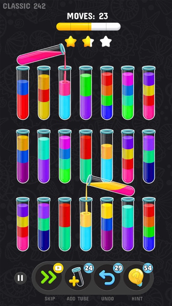 《端水大师 - 水排序》是一款益智闯关小游戏,规则十分简单,只需点击任意容器,把液体倒入其他容器,让容器装满同一种颜色的液体就行。要注意啦,只有当所有相同颜色的液体都集中在同一试管里,才算胜利通关哦。游戏的关卡难度会持续升级,你需要思考、制定策略,在每个操作中通过预测与逻辑来解谜。这款益智游戏以极为有趣且富有挑战性的方式,激发你的大脑活力,快来投身到游戏中吧!