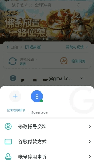 3、完成邮箱创建后,打开Ourplay,点击“登录谷歌账号”选项。