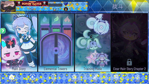 5、战斗模块中有多种玩法可供体验,包括Main Story(主要故事)、Elemental Towers(元素塔)以及Training Mode(培训模式)。