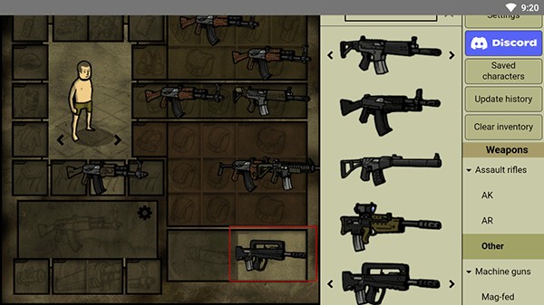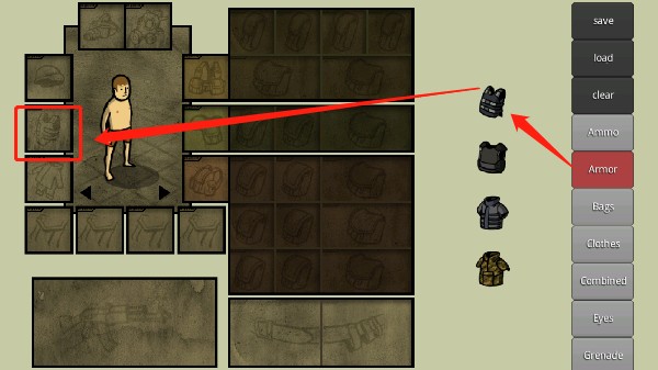 bag指书包与背包,eye代表夜视仪以及战术护目镜。通过用手将其拖到人物四周相应的方框当中,要是对应方框不正确,那么所选物品就无法留存。注意:需要在暗色部分放置背包之类的物品来解锁贮存空间。