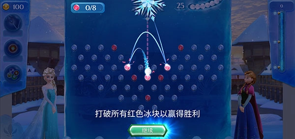 3、举例来说,在关卡1中,只要打破所有红色冰块就能取得胜利。