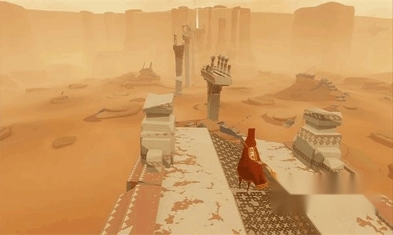 在风之旅人中,玩家扮演无名旅者,在沙漠中开始冒险,通过翻越高山、走过桥梁,寻找并唤醒旅途中的碑文来加强自己的飞行能力。
