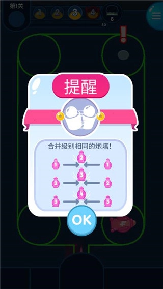 2、将数字和颜色相同的炮塔进行合成。
