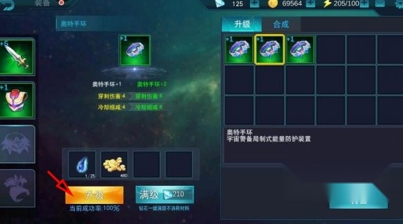 点击升级,再点击右边的装备,进行完以上操作后你就可以升级。