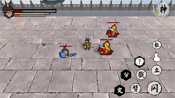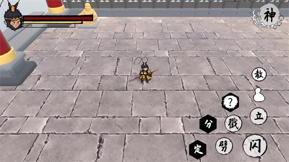 4、在屏幕左侧可控制角色移动,屏幕右侧则分别设有劈棍、立棍、戳棍、闪避以及神通的按键。
