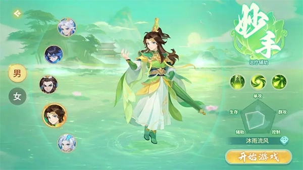 从创建角色的五维图以及技能介绍中能够看出,妙手的定位是【辅助治疗】