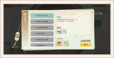 在教学关卡中,我们出战的阵容是系统固定的。所以只需按照系统要求操作,打败敌方,就可通关。