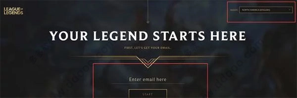 2、进入美服后,右上角默认显示“北美”。若你打算注册其他地区,可自行挑选对应的地区,接着在邮箱栏输入自己的邮箱,QQ邮箱也支持,最后点击“START”进入下一步。