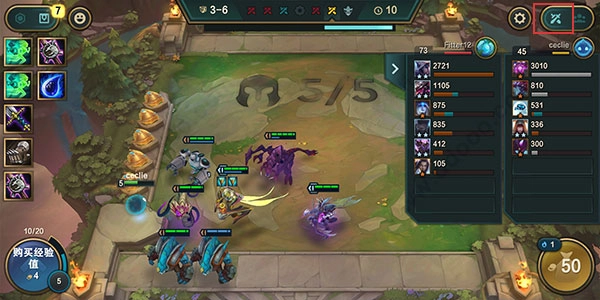 六、在此处能够查看己方与敌方英雄的输出情况,卡池设置在了屏幕上方。